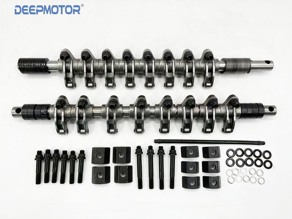 8 pairs of shaft-mount rockers with adjustable cup-style valve lash adjusters