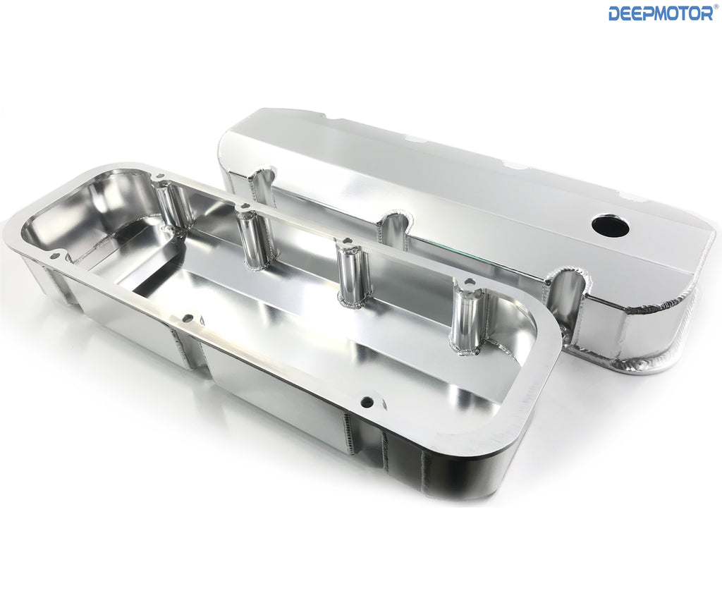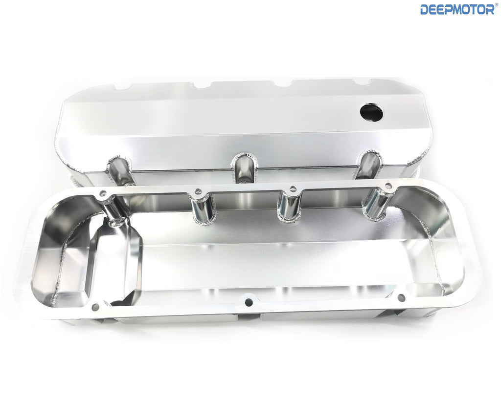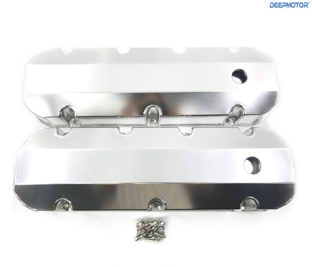 This pair of fabricated aluminum valve covers Fits 1965-95 Big Block Chevy 396, 402, 427, 454, and 502 with perimeter bolt pattern.