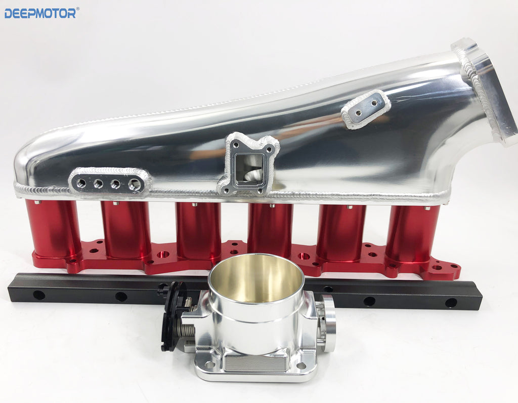 CNC RB26 RB26DET Intake manifold 90mm Throttle Body 6 Injectors Fuel Rail Set